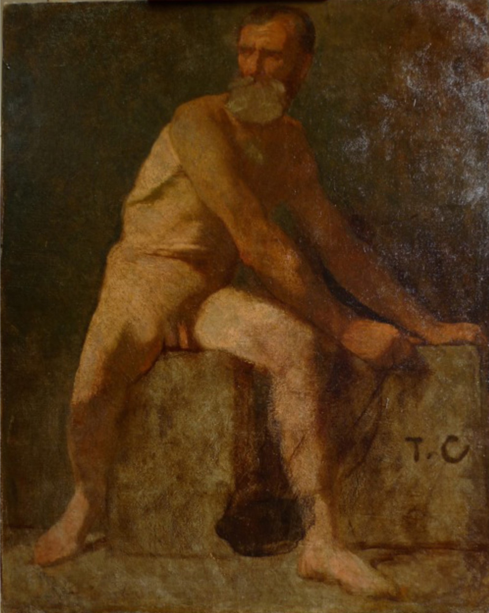 portrait (homme, en pied, nu, assis)