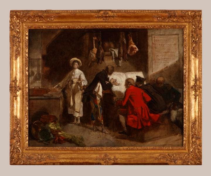 La Commandite s'inscrit dans la série des Arlequinades. L'oeuvre aurait été peinte à Senlis où Couture s'était retiré en 1859. Elle témoigne du regard satirique de l'artiste sur les moeurs financières de son temps. La Commandite désigne en effet une société commerciale dans laquelle une partie des associés apporte des capitaux sans prendre part à sa gestion, d'où de nombreuses malversations qui ont conduit à revoir sa législation. Un gérant vêtu en Arlequin explique à trois personnages établis (un noble, un militaire, un magistrat) les raisons de ses dépenses liées à la gloutonnerie de Pierrot