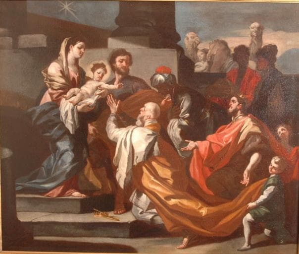 Attribution par Jacques FOUCART à Solimena ou à son entourage. Oeuvre inspirée du tableau de Solimena, Adoration des Mages, église Santa Maria Donnalbina (Naples)