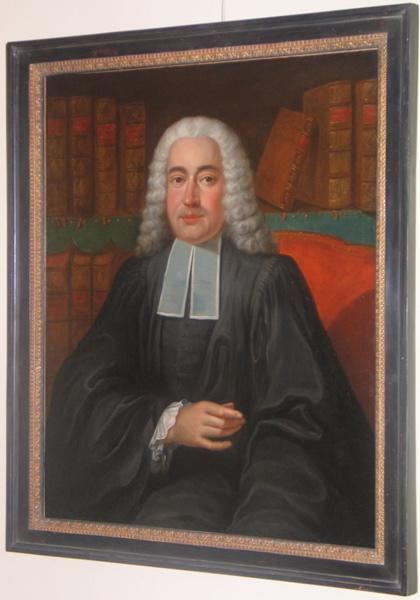portrait d'inconnu (magistrat, homme, assis, à mi-corps, livre, bibliothèque)