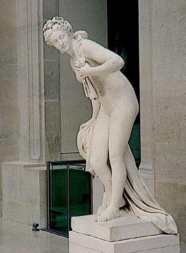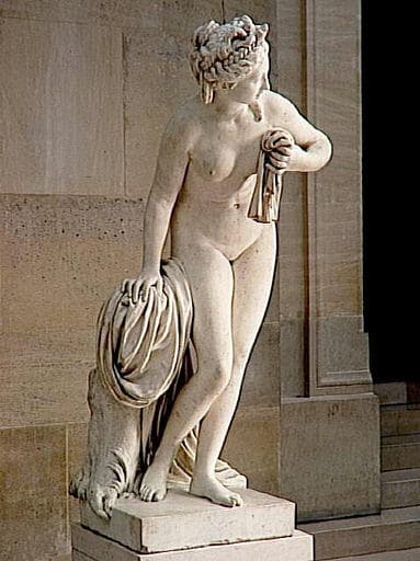 commandée en 1772 par la comtesse Du Barry (1743-1793) pour servir de pendant à la statue de Vénus d'Allegrain (conservée au Louvre MR 1747) ; payé le 12 septembre 1774 ; marbre au livret du Salon de 1777 (visible dans l'atelier du sculpteur) ; terminé et placé dans le parc du château de Louveciennes en 1778 ; réservé pour la Nation par Louis Simon Boizot le 26 décembre 1793 ; il existe de nombreuses réductions dont une au Louvre (ENT 1995.8, attribué à)