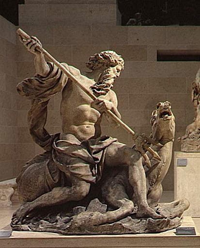 un des quatre groupes commandés en 1698, et également conservés au Louvre, par Jules Hardouin Mansart (1646-1708), surintendant des Bâtiments du roi, pour la Rivière du parc de Marly, avec La Seine (MR 1825), La Marne (RF 3007) et son pendant Amphitrite (RF 3005). Modèles exécutés en 1698-1699. Moulage des modèles en plâtre exécuté en 1699 sur les emplacements prévus pour les marbres. Exécution commencée une fois terminés le Mercure et La Renommée (MR 1822 et MR 1824) et exécutés en marbre de 1703 à 1708 (d'après l'inventaire des collections royales de 1707, exécutés en 1705). Parfait paiement, 18 avril 1712