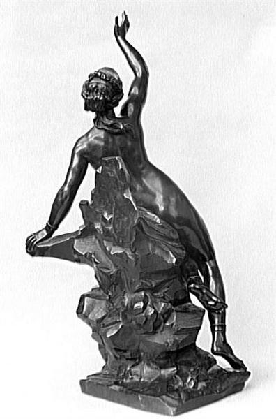 figure mythologique (Andromède, assis, en appui, bras : droit : levé, nu, bijou, draperie, rocher, captif, chaîne)