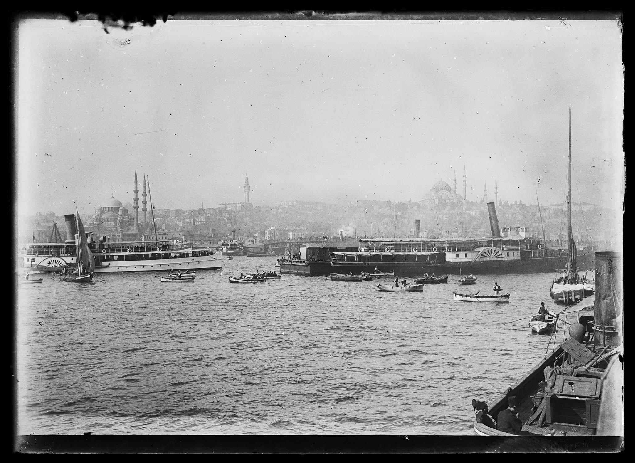 POP | Plateforme ouverte du patrimoineVue d'ensemble, depuis un navire, avec des navires à vapeur et à roue à aubes au premier plan
