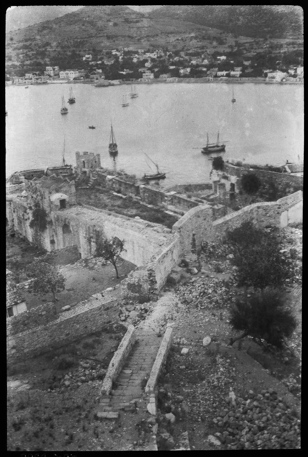 Vue depuis la tour d’Italie vers la partie occidentale de la courtine sud