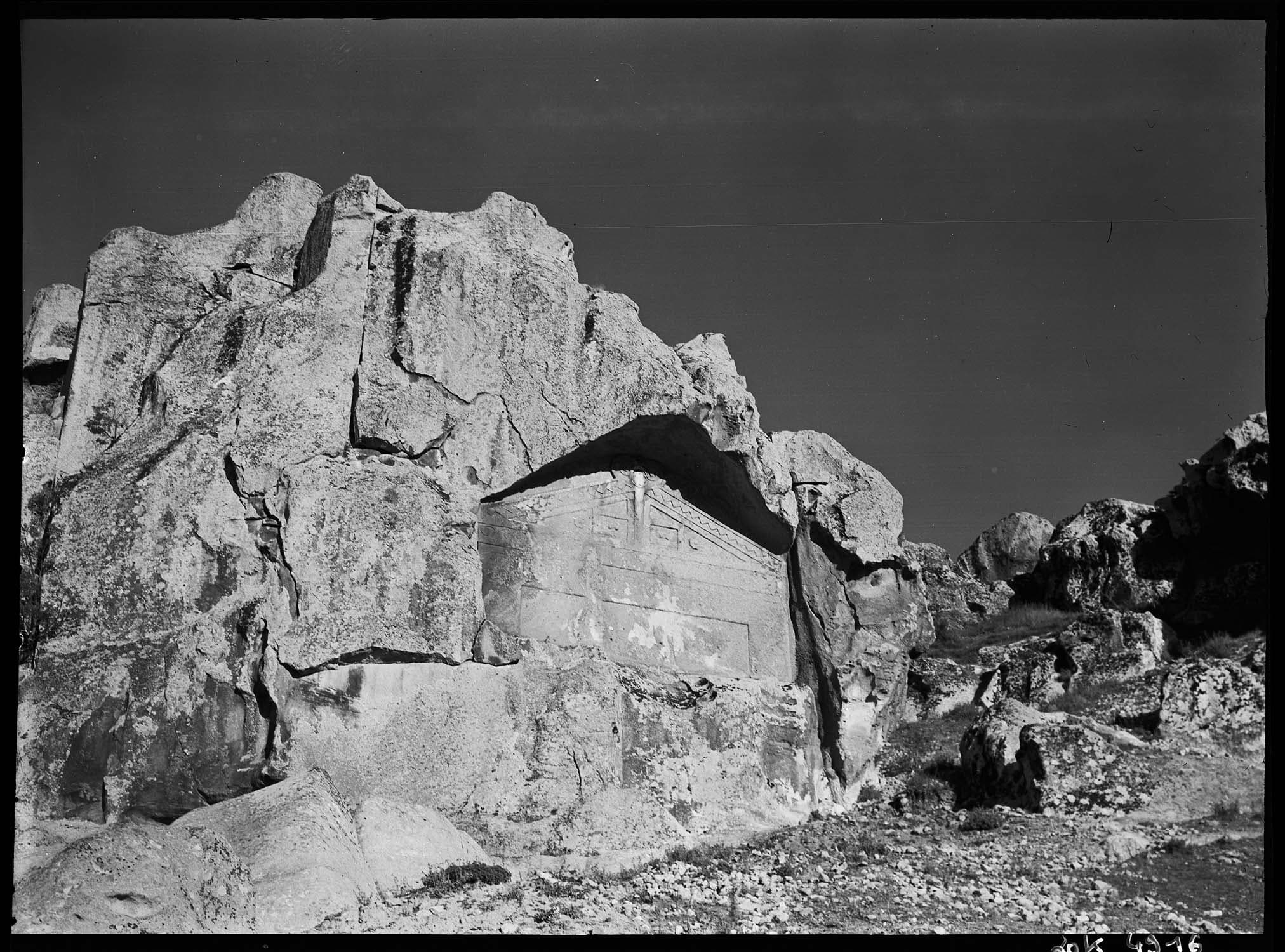 Monument inachevé : vue d'ensemble (voir "Phrygie. Exploration archéologique…", tome IV : "La Cité de Midas. Architecture", par A. Gabriel, Paris, E. de Boccard, 1965, pl. 35)