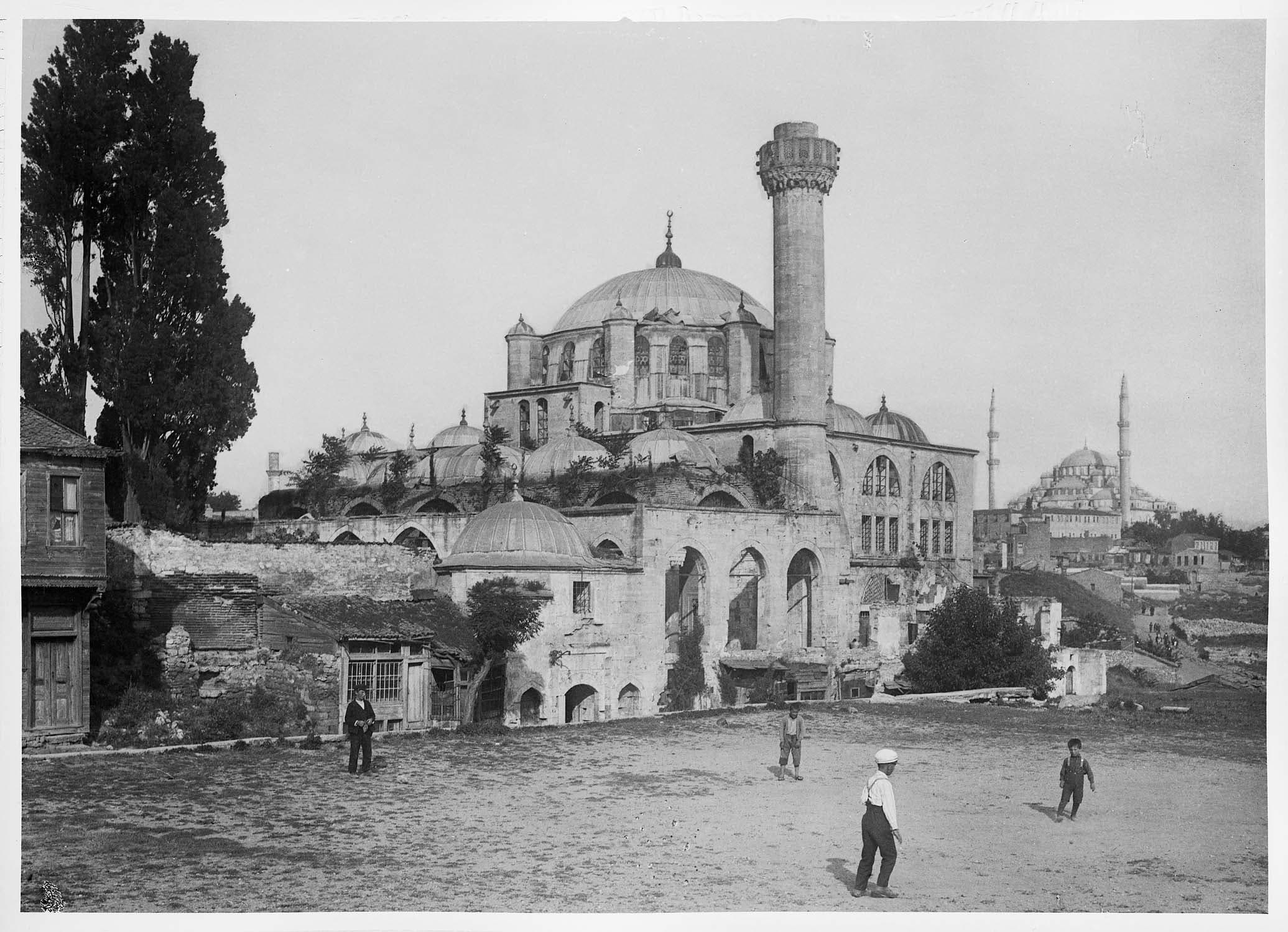 POP | Plateforme ouverte du patrimoineVue extérieure d'une mosquée non identifiée, le minaret en partie écroulé (Eski Ali Pasa ?)