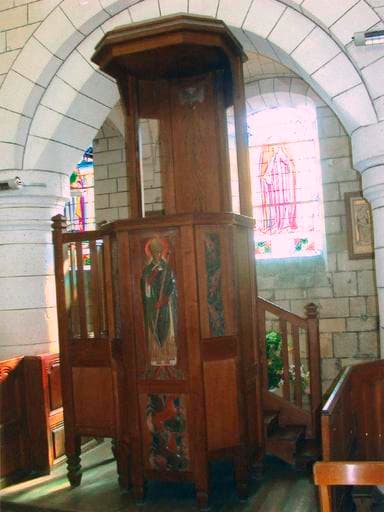 POP | Plateforme ouverte du patrimoinechaire à prêcher, chêne taillé, cuve composée de panneaux sculptés en léger relief et peints, saint Médard, début 20e siècle