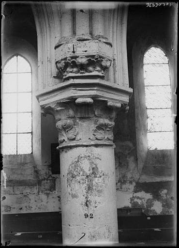 POP | Plateforme ouverte du patrimoineIntérieur : pilier du bas-côté, chapiteau, feuillages