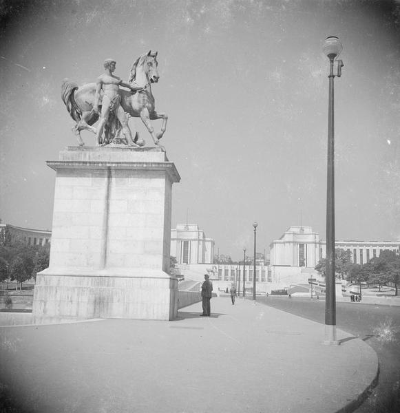 [La statue du Guerrier romain par Louis-Joseph Daumas, au pont d'Iéna, près du Jardin du Trocadéro]