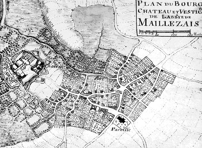 Plan du bourg, château et vestiges de l'abbaye de Maillezais