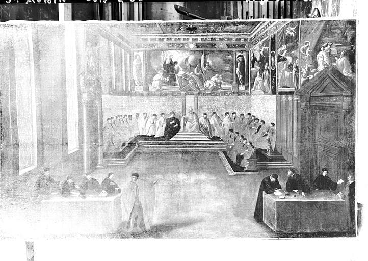 POP | Plateforme ouverte du patrimoinePeinture sur toile : Réception par le Doge de Venise d'un La Roche Pot, ambasadeur de France, état après restauration