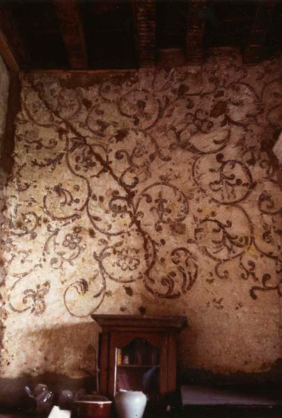 peintures monumentales : mur Est représentant des motifs floraux, des oiseaux et des décors de rinceaux
