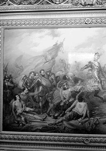 Galerie Campana, plafond peint de la 2e salle : La Clémence d'Henri IV après la victoire d'Ivry (partie gauche)