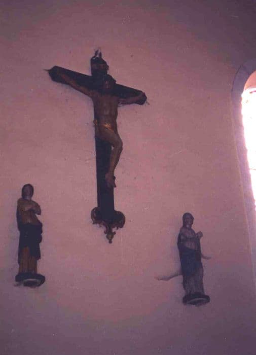 statues (calvaire, éléments d’une poutre de gloire) : Christ en croix, la Vierge, saint Jean