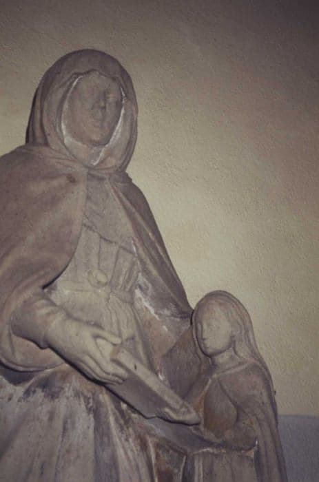 groupe sculpté : Education de la Vierge (l’), vue partielle
