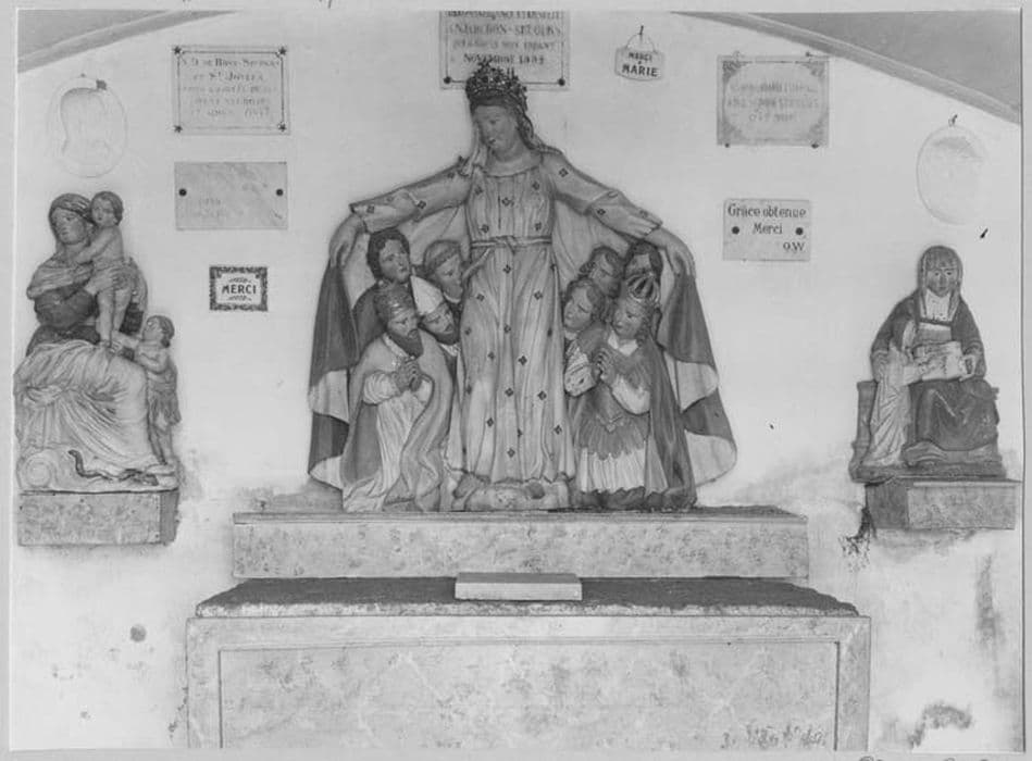 groupe sculpté : Sainte Anne et la Vierge, Vierge à l'Enfant jouant avec saint Jean-Baptiste, Vierge de Miséricorde