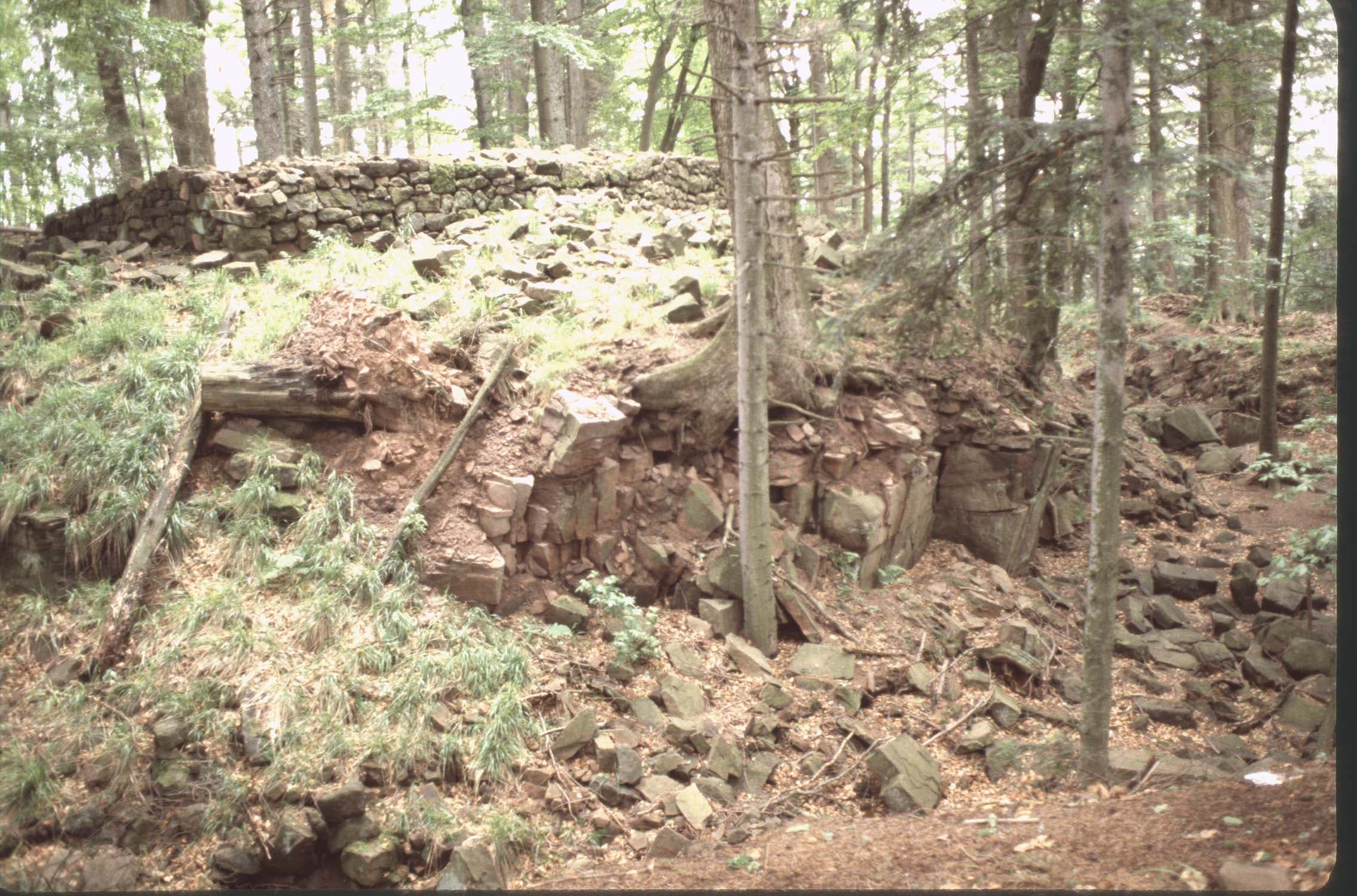 POP | Plateforme ouverte du patrimoineVestiges du fossé : murs et éboulis au milieu de la forêt