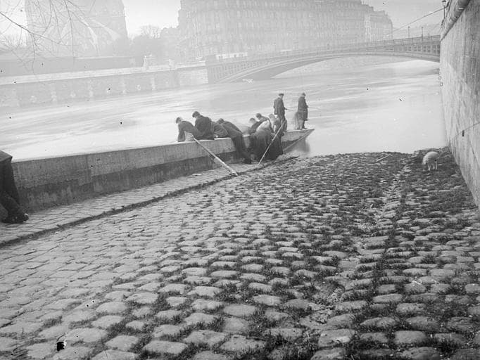 POP | Plateforme ouverte du patrimoineCrue de la Seine, pêcheurs, chevet de Notre-Dame à l'arrière-plan