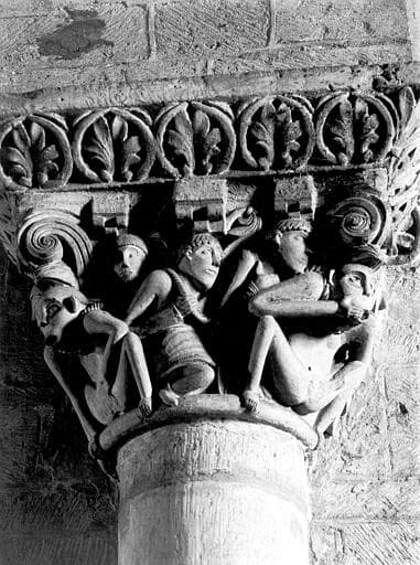 Bas-côté, chapiteau de la nef : hommes et monstres