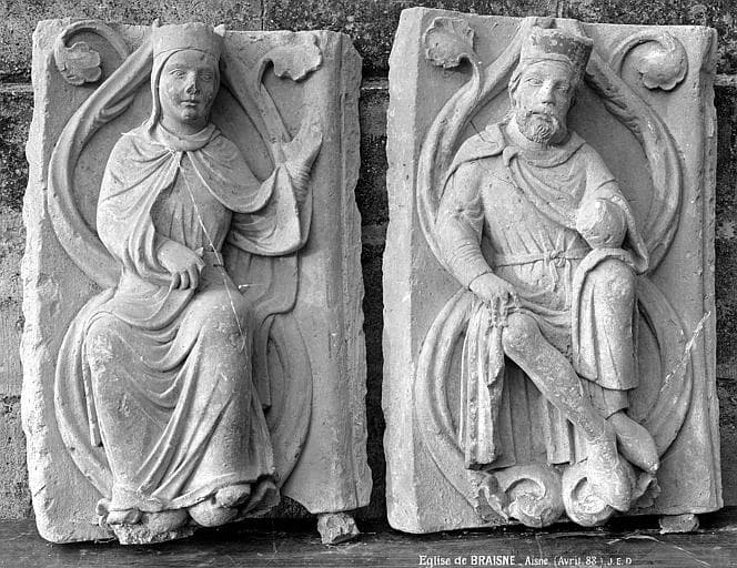 POP | Plateforme ouverte du patrimoineDeux claveaux de voussures provenant du portail central primitif et déposés dans le bas-côté sud : Un roi et une reine de l'Arbre de Jessé