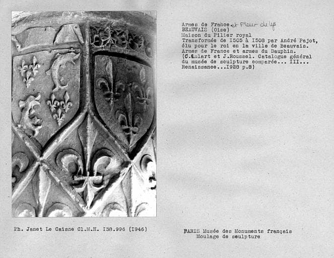 Moulage d'un pilier orné des armes de France et des armes du Dauphin