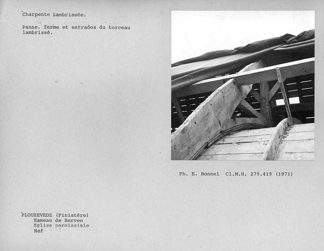 POP | Plateforme ouverte du patrimoineExtérieur de la charpente lambrissée de la nef. Panne, ferme et extrados du berceau lambrissé