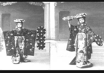 ACTRICE ; RACE JAUNE ; EN PIED ; COSTUME DE SCENE ; COSTUME TRADITIONNEL ; VUE DE FACE ; TOILE DE FOND