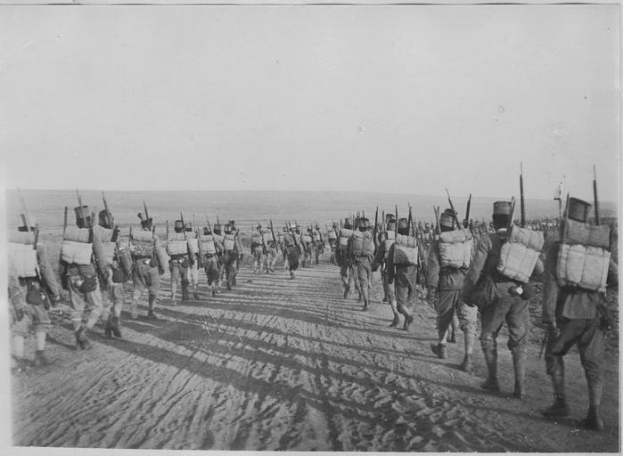 POP | Plateforme ouverte du patrimoinePositions dans le secteur de Guieurdina (13-18 juin 1916). Sur la route, 3ème compagnie du 4ème bataillon de marche de Malgaches