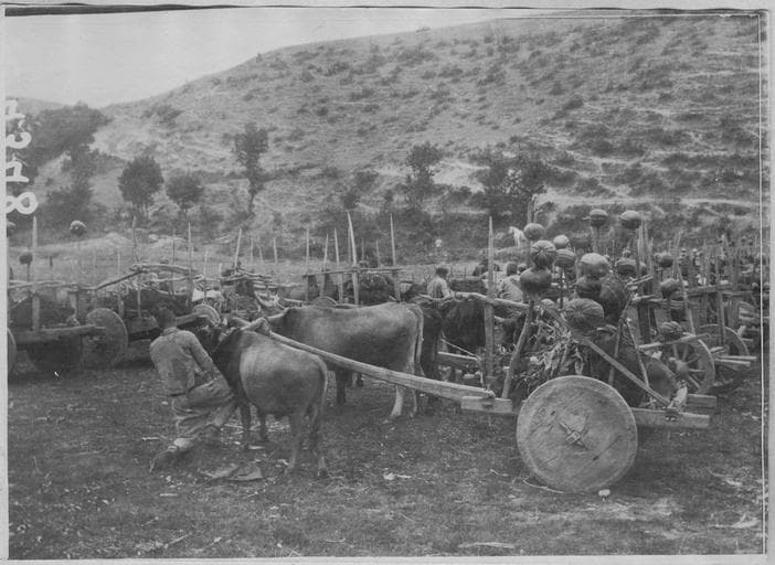 Dans le secteur de Florina (septembre 1916). Ravin de Pesosnitsa : Convoi auxilliaire turc réquisitionné par l'Armée Française d'Orient et commandé par un officier anglais - POP