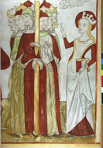 La légende de sainte Catherine, les philosophes sont encouragés par la sainte pendant leur supplice, registre central