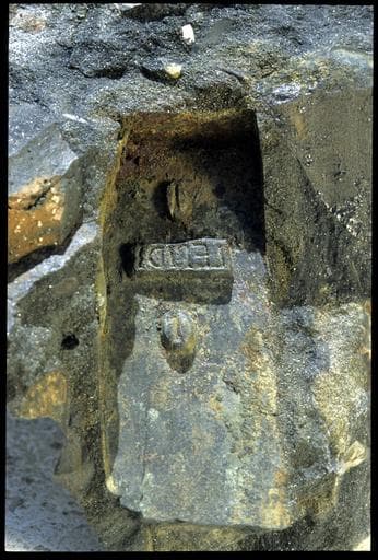 POP | Plateforme ouverte du patrimoineVue de l'empreinte des marques d'un lingot de fer dans la concrétion (fouille L. Long/Drassm).