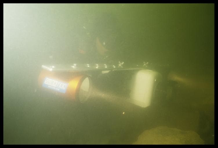 Vue sous-marine d'un plongeur vidéaste (fouille L. Long/Drassm).