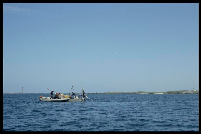 POP | Plateforme ouverte du patrimoineVue de la barge et d'un zodiac sur le site.