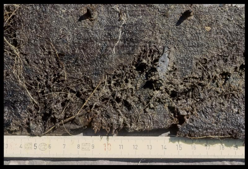 POP | Plateforme ouverte du patrimoineVue de détail d'une virure de la carène (fouille E. Rieth).