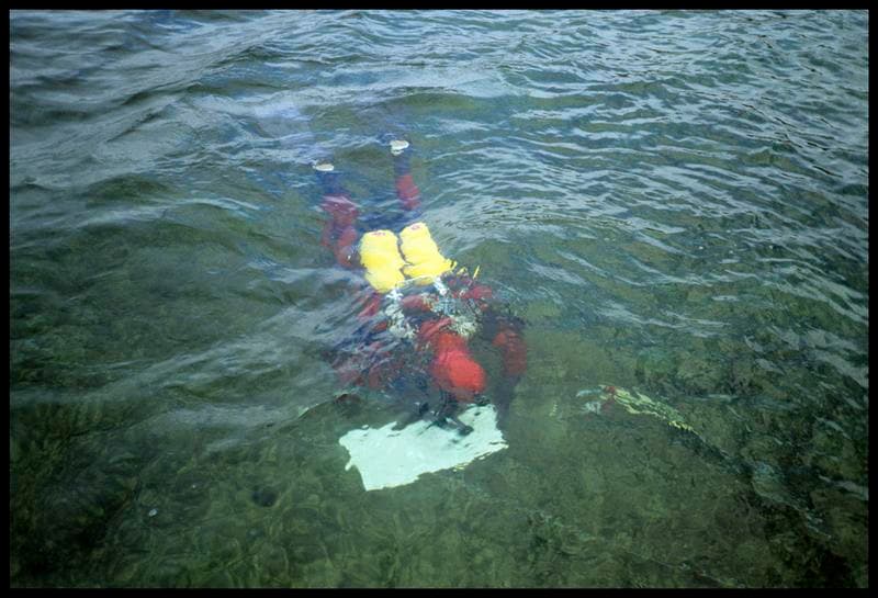 Vue d'un plongeur depuis la surface (fouille P. Grandjean/Drassm).