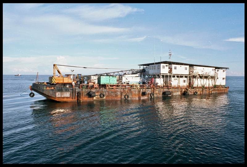 Vue de la barge de fouille (fouille M. L'Hour/Drassm).