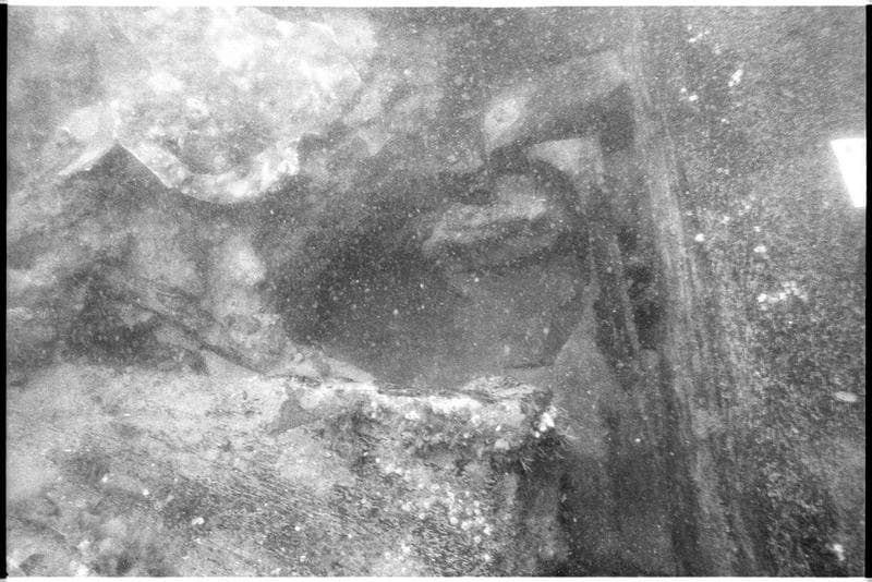 Vue sous-marine de détail de la carène (fouille M. L'Hour/Drassm).