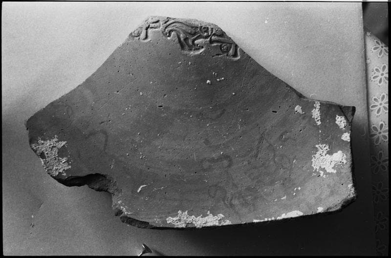 Vue de dessus du fond d'un plat de sigillée claire orné d'un animal non identifié (fouille B. Liou).