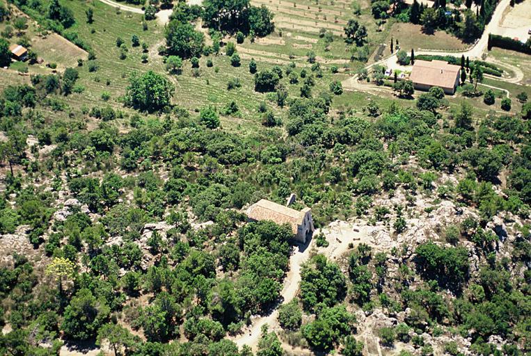 Vue générale prise du nord. La chapelle a été reconstruite à l'époque contemporaine. Vue générale de Notre-Dame de la Roque (castrum et église) prise du nord (Moissac-Bellevue, Var).