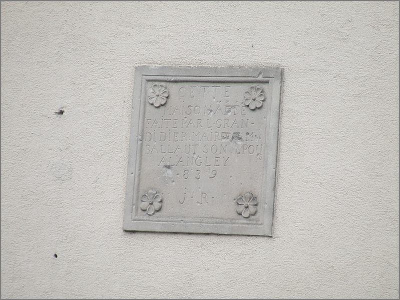 Ferme, élévation antérieure, pierre de fondation datée1839, ensemble face.