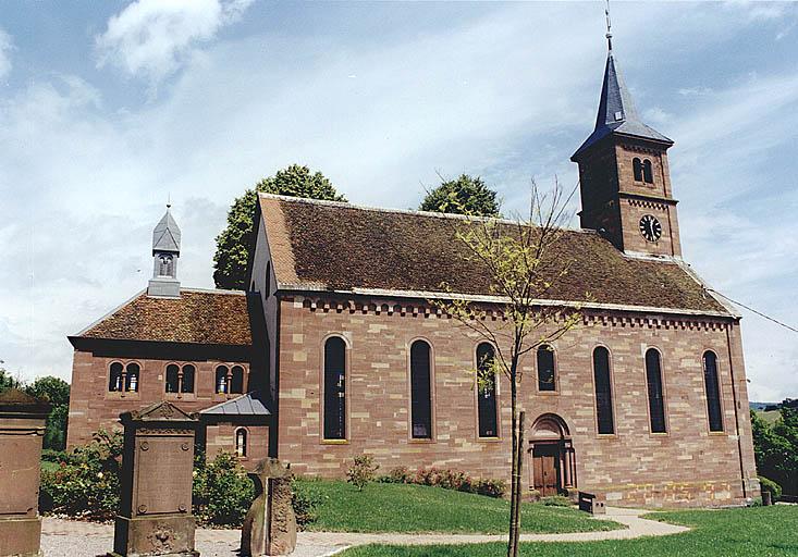 Elévation latérale sud. L'ancienne chapelle catholique est à gauche.
