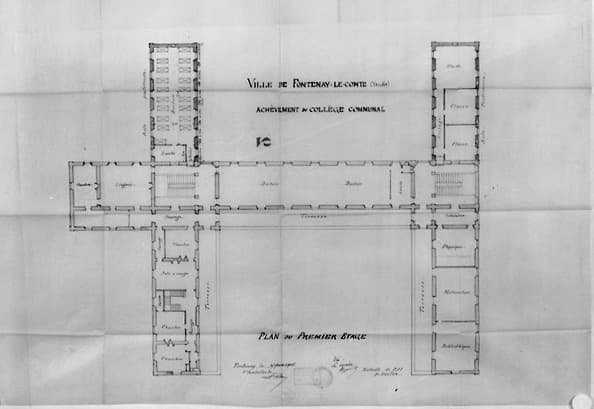 Achèvement du collège. Plan du premier étage au 1/100e, signé et daté A.Filuzeau, le 15 février 1906. (A.C. Fontenay-le-Comte, 4 M 3).