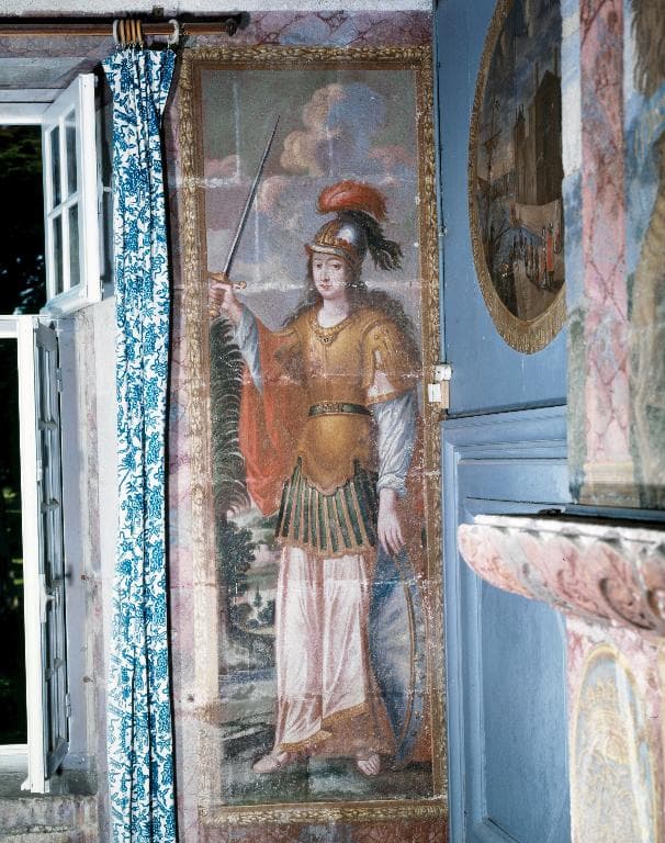 Ensemble de peintures monumentales de la "Chambre de Judith" : trois dessus-de-porte, une cheminée, six peintures murales, Maillé (Plounévez-Lochrist) ; Ensemble de trois peintures monumentales : Minerve, Judith, Jaël, Maillé (Plounévez-Lochrist)