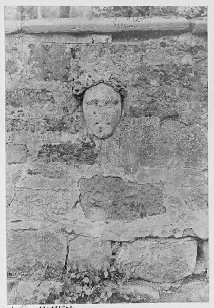 fragment sculpté provenant du château de Bouxwiller, encastré dans un mur de jardin (ancienne maison 17)