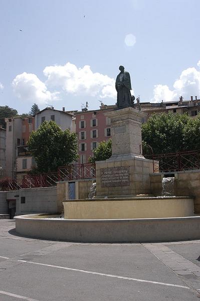 Vue générale du monument, la pierre du piédestal monumental provient du hameau de la Crau à Champtercier, village où Gassendi vit le jour en 1592.