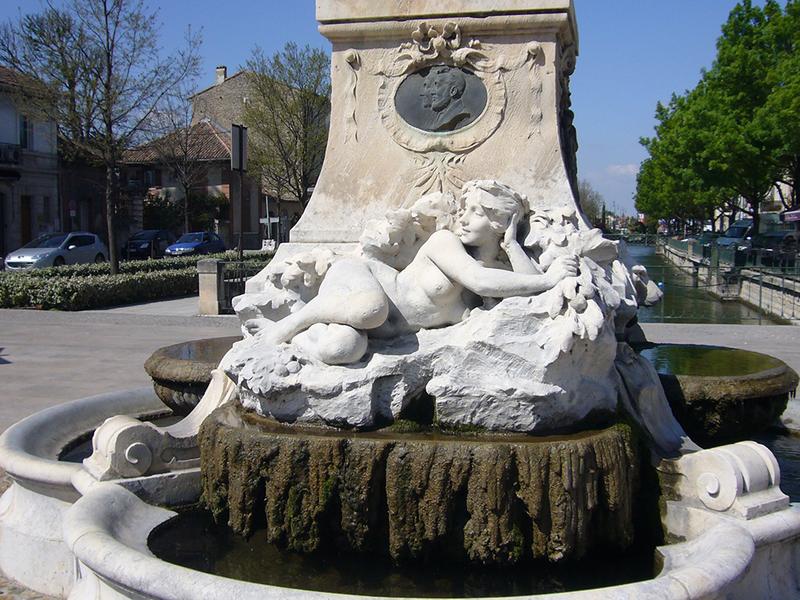 La nymphe couchée en avant symbolise la rivière Sorgue, elle est signée Cantini.