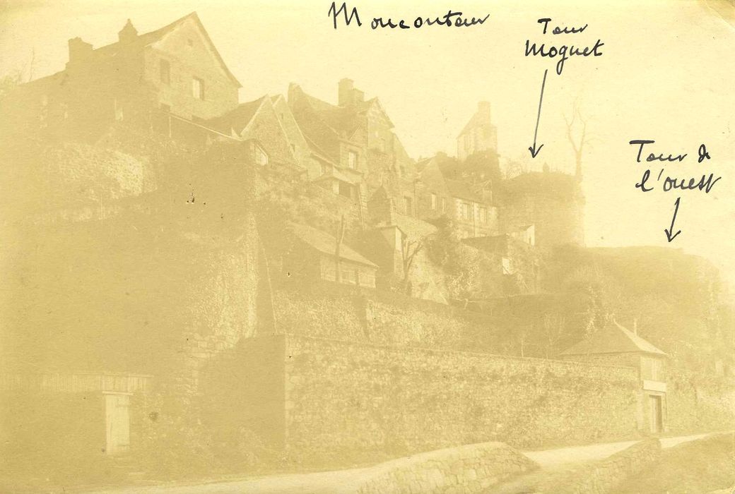 Place forte remontant à des temps anciens et ayant connu divers appelations (Castrum Moncontorium ; Mons Consularis ; Mons Contoris ; Moncontour). Le tracé de l'enceinte actuelle remonte aux 11e et 12e siècles, mais l'origine de la forteresse est antérieure. L'ouvrage a subi d'importants travaux au 14e siècle, et plusieurs interventions ultérieures. La tour de l'ouest date du 13e ou 14e siècle. La tour Mognet, assise en partie sur celle de l'ouest, date de 1400. Au départ, l'enceinte n'avait qu'une porte pour les véhicules. A la fin du 14e siècle, ouverture d'une porte flanquée d'une tour, et formée de deux passages, pour piétons et voitures. Tour d'environ 10 mètres de diamètre d'où part la muraille qui la reliait anciennement à celle du donjon.