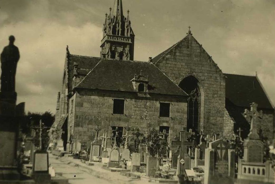 L'édifice actuel date en majeure partie de 1847. De l'ancienne église, remontant au début du 16e siècle, puis profondément remaniée en 1712 et 1725, subsistent l'aile sud, une partie du bas-côté sud et la sacristie. Les travaux furent exécutés par Charles Kerleau de Penevan, architecte et entrepreneur. La tour date de 1906 et a été édifiée sur les plans de Lageat. Le transept sud a été élargi par une petite chapelle à l'ouest. Dans le pignon à pinacles, une fenêtre à trois meneaux et rosace se remarque. A l'intérieur, des demi-arcs soutenant la toiture de la chapelle s'apuient sur les colonnes qui soutiennent la voûte demi-cylindrique du transept. Le maître-autel a été exécuté en 1680-1681 par Pierre et Maurice Le Cleuziat, sculpteurs, et Yves Le Corre, menuisier. La dorure en fut exécutée en 1684 par Yves Goures et Pierre Jegat.