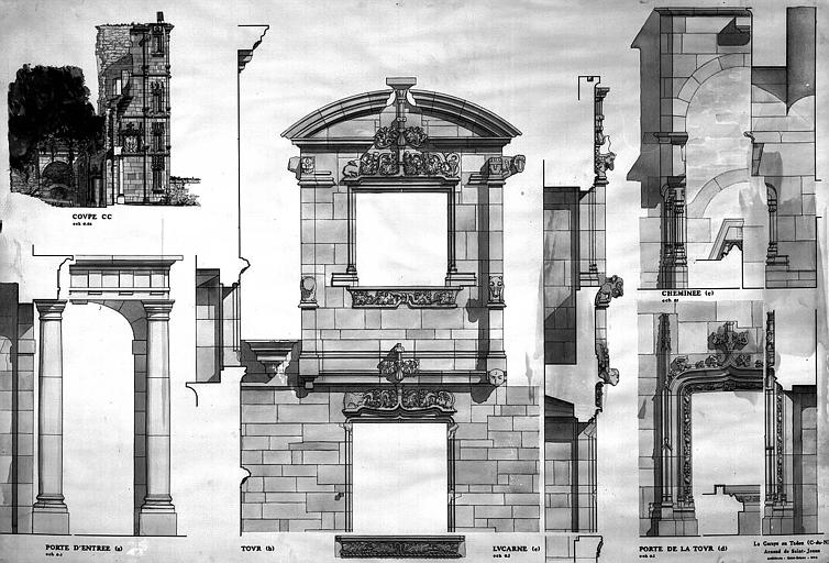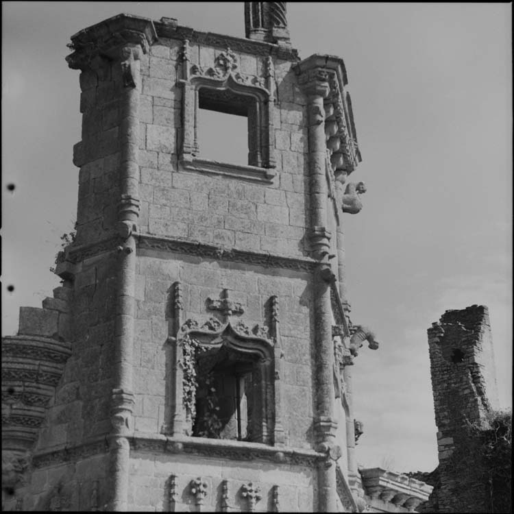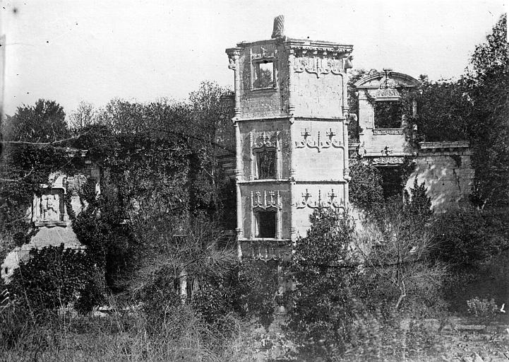 Ruines conservant des détails sculptés pouvant appartenir à la fin du 15e et au début du 16e siècle. Certaines parties des murailles ont conservé des encadrements de fenêtres et des lucarnes sculptés. Des cadres, les angles, la hauteur des allèges, les linteaux sont moulurés, ainsi que les trumeaux pleins de la tour polygonale.